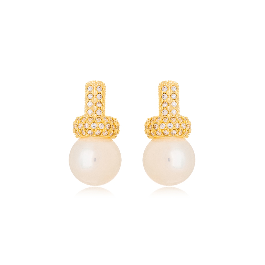 BRINCO PÉROLA SHELL CRAVEJADO COM MICRO ZIRCÔNIAS OURO 18K